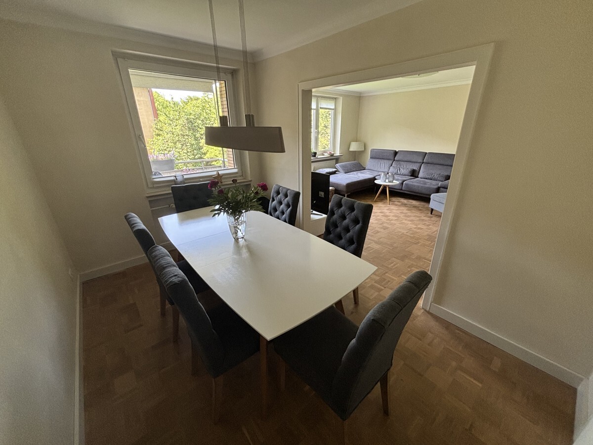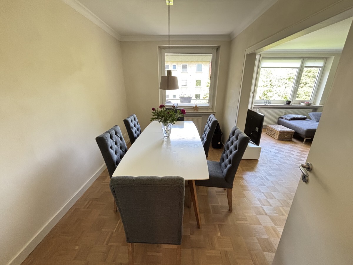 Entdecken Sie Ihr neues Zuhause in einer der begehrtesten Wohnlagen von Bremen, im Herzen von Schwachhausen. Diese modernisierte Wohnung aus dem Jahr 1967 bietet eine ideale Kombination aus einer sehr gelungenen Raumaufteilung und zeitgemäßem Komfort. Auf einer großzügigen Wohnfläche von ca. 85 m² erwartet Sie ein durchdachtes Raumkonzept mit insgesamt drei Zimmern (ein viertes könnte aus dem Essbereich gemacht werden), darunter zwei gemütliche Schlafzimmer, die Platz zum Entspannen bieten. Das weiß geflieste Badezimmer mit WC ist hell und funktional und verfügt ebenso wie das Gäste-WC über ein Fenster.