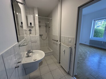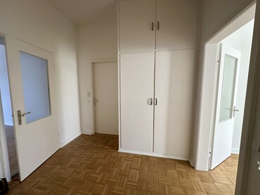 Im Flur befindet sich ein deckenhoher und breiter Einbauschrank der Ihnen viel Stauraum bietet, zusätzlich zu der Abstellmöglichkeit im Gemeinschaftskeller.